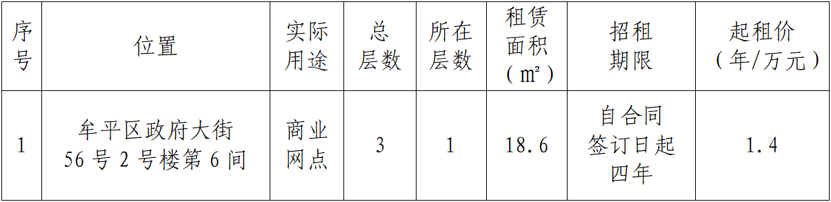 煙臺市公交集團 牟平有限公司房屋招租公告